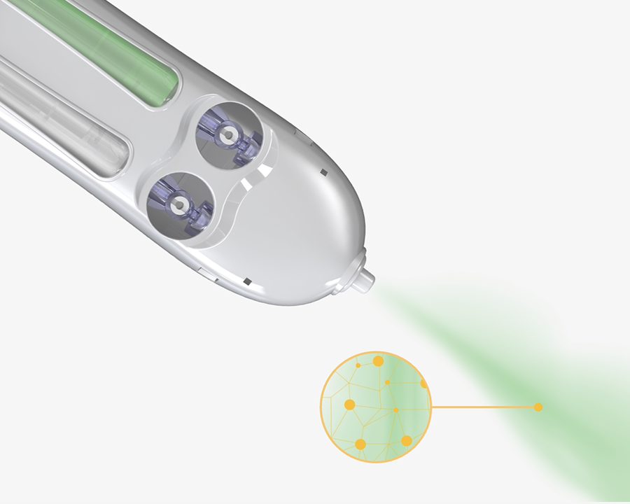 Additionally, the applicator consists of an integrated air pump, which assists on the application of the hydrogel.